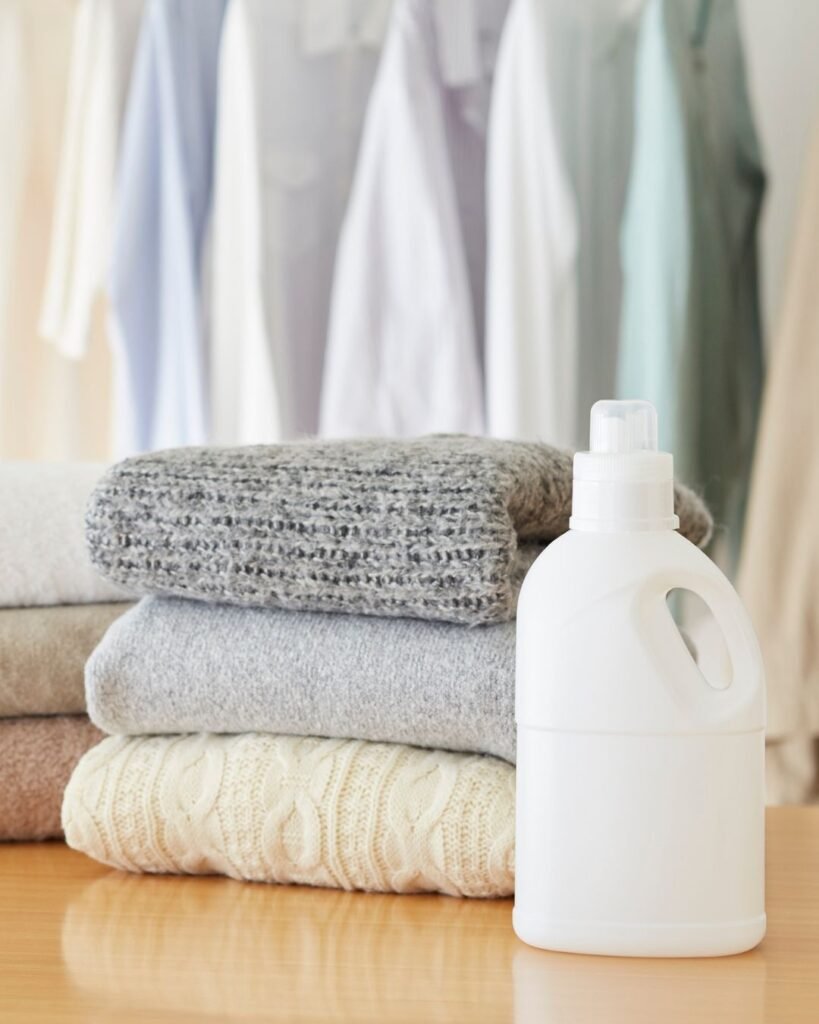 Clothes are washed, dried, and folded neatly with care using safe detergents and clean machines.